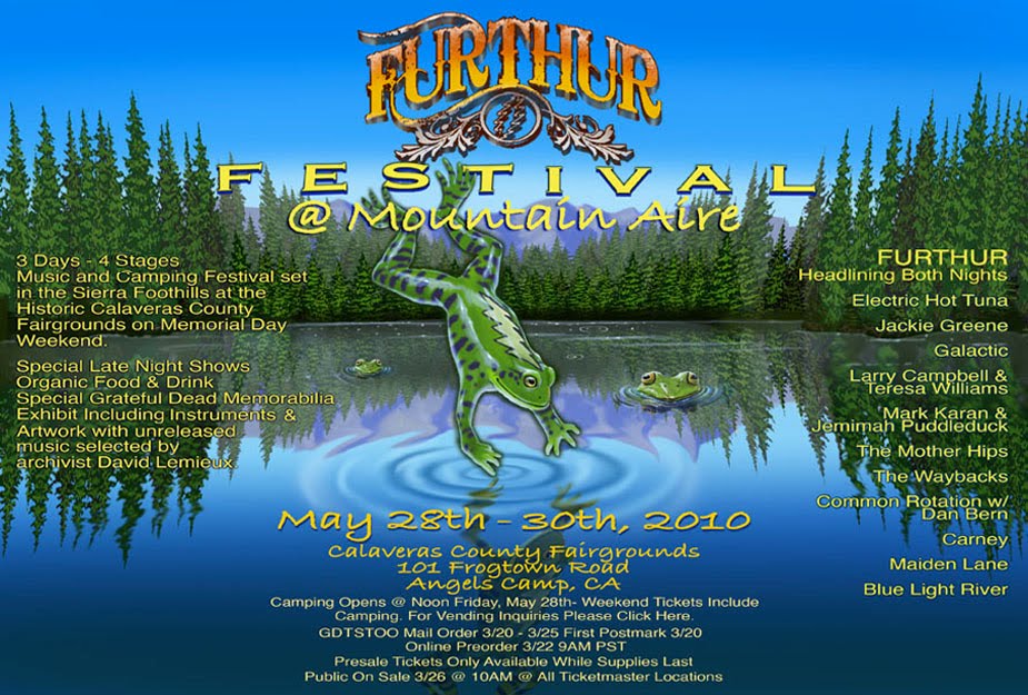 Furthur Festival got started with a bang last night with an All-Star Jam featuring (get ready): Phil Lesh, Bob Weir, Larry Campbell, Jeff Chimenti, Joe Russo, Mark Karan, Jackie Greene, Jorma Kaukonen, Jack Casady, and Teresa Williams. Phew! That cast of characthers definitly deserves ‘All Star Billing’. My one complaint – no John K. aka ‘Faux Jerry’ all night long, and Jackie Greene playing all set on Guitar, Bass, and Keys… In any case, I can’t wait to hear the recording of this one and downloads, vids, pics from the whole weekend will be posted as soon as available. Get ready to go Furthur than you’ve gone before!