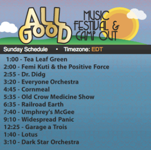 Other possible big names that may appear on the webcast include Furthur, George Clinton and P Funk, UM, YMSB, and Grace Potter. The full All Good Lineup can be found on the festival’s official site. You can catch the live webcast here, enjoy phans!